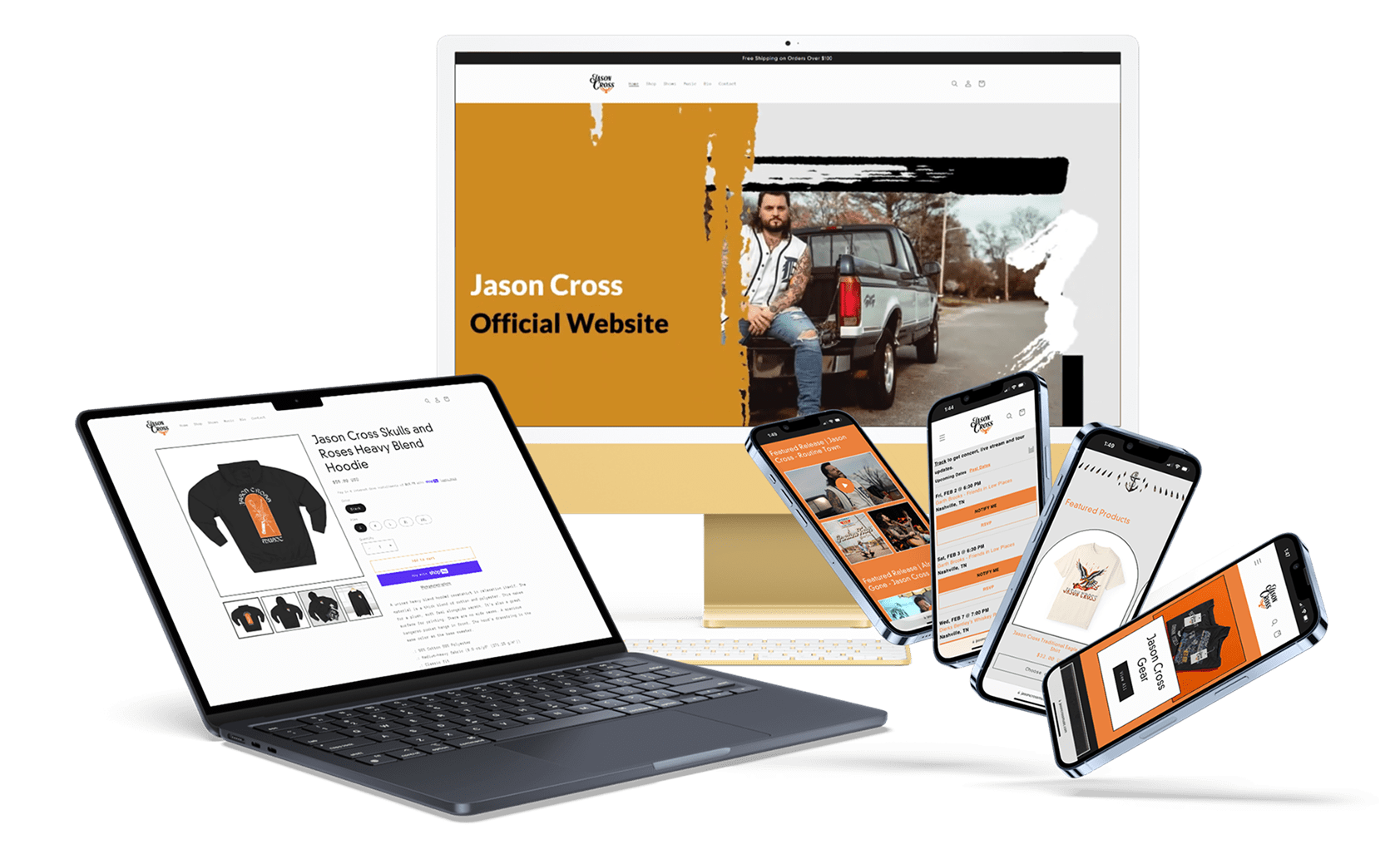 Jason Cross, a country-rock musician known for his distinct style and strong online presence, embarked on a comprehensive project in 2021 to establish his brand identity and digital presence as well as develop a robust e-commerce solution. The goal was to create a cohesive brand experience that exemplifies Jason's unique style and music alike.